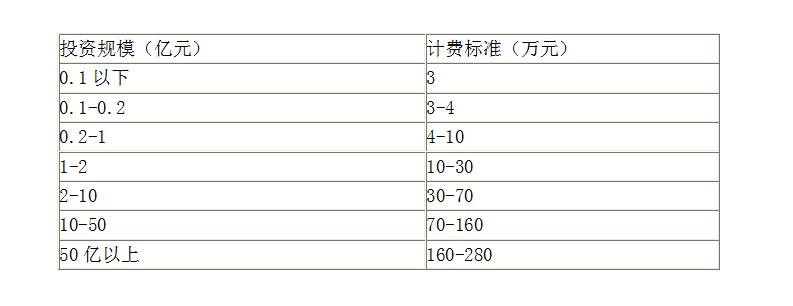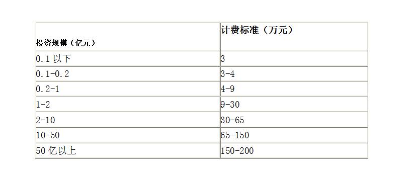 注:評價費用根據(jù)項目的投資額按計費標準采用直線內(nèi)插法計算。